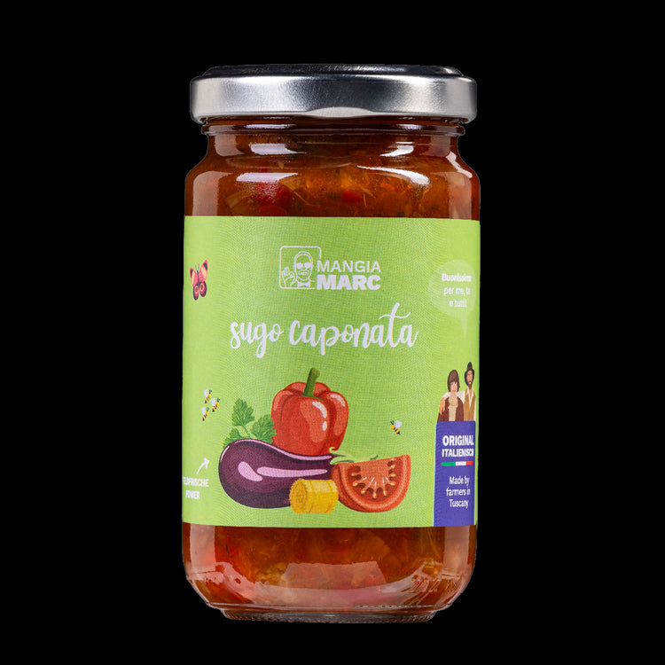 Unsere Sugo Caponata ist mehr als nur eine Gemüse-Soße – sie ist ein echtes Geschmackserlebnis! Mit feldfrischem Auberginen, Paprika, sonnengereiften Tomaten und Zwiebeln aus der Toskana bringt sie den echten Geschmack Italiens auf deinen Teller. Verfeinert mit hofeigenem Olivenöl und frischer Petersilie, bietet diese Caponata von Francescas Bauernhof eine perfekte Balance aus süß, herzhaft und mediterran aromatisch.