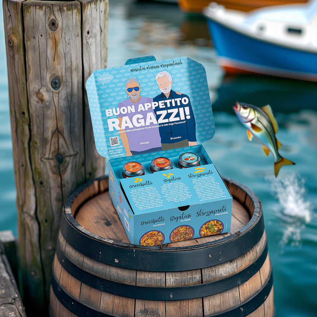 Unsere MangiaMarc Pastabox Premio ist für all diejenigen, die sich Gourmet-Pastagerichte nach Hause holen möchten.